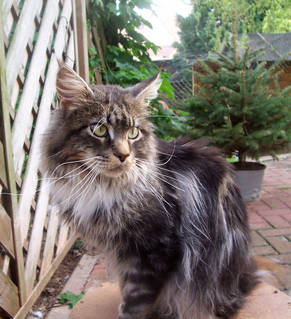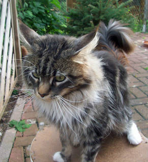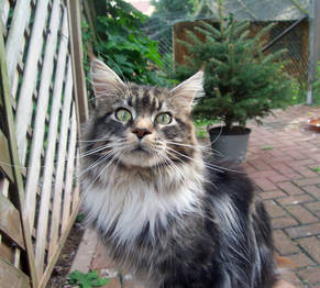 Unser Jungkater Nostradamus ist zzt. noch recht schlacksig mit einem wunderschönen langen buschigem Schwanz. Vom Wesen her ist er eher zurückhaltend und sehr umgänglich.